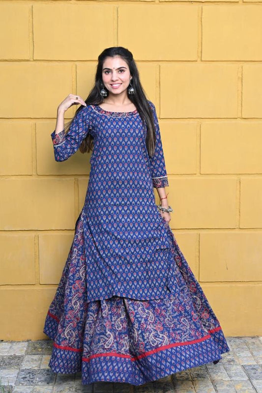 HandBlock Printed Pure Cotton one piece dress (3 frill- 13 variants)