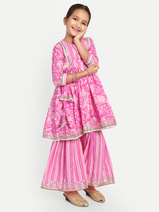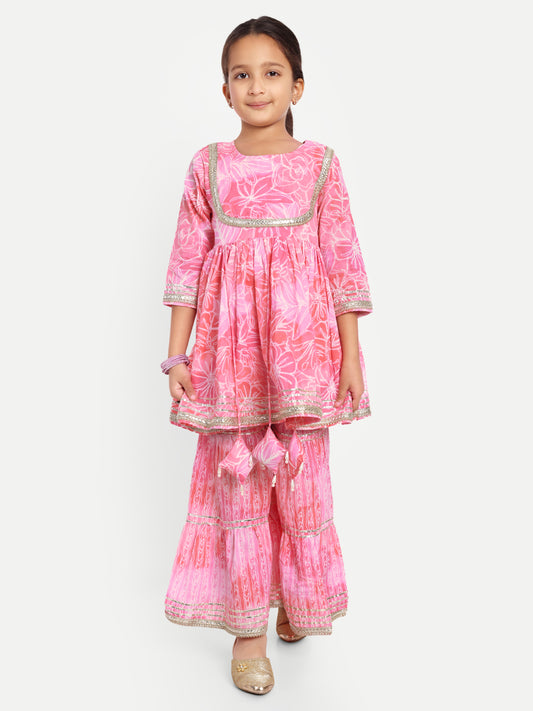 Sharara Shimmer: Pink & White Kurti Sharara for Girls for Festive Diwali, Weddings, Special Family Occasions, casual outing