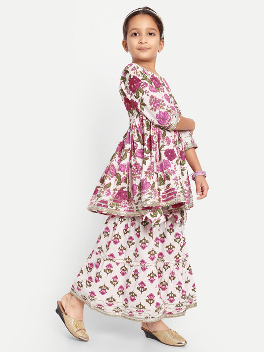Sharara Shimmer: Magenta & White Kurti Sharara for Girls for Festive Diwali, Weddings, Special Family Occasions, casual outing