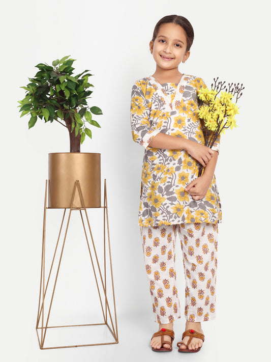 Kurti Kritters: White & Yellow Kurti Pant for Girls for Festive Diwali, Weddings, Special Family Occasions, casual outing